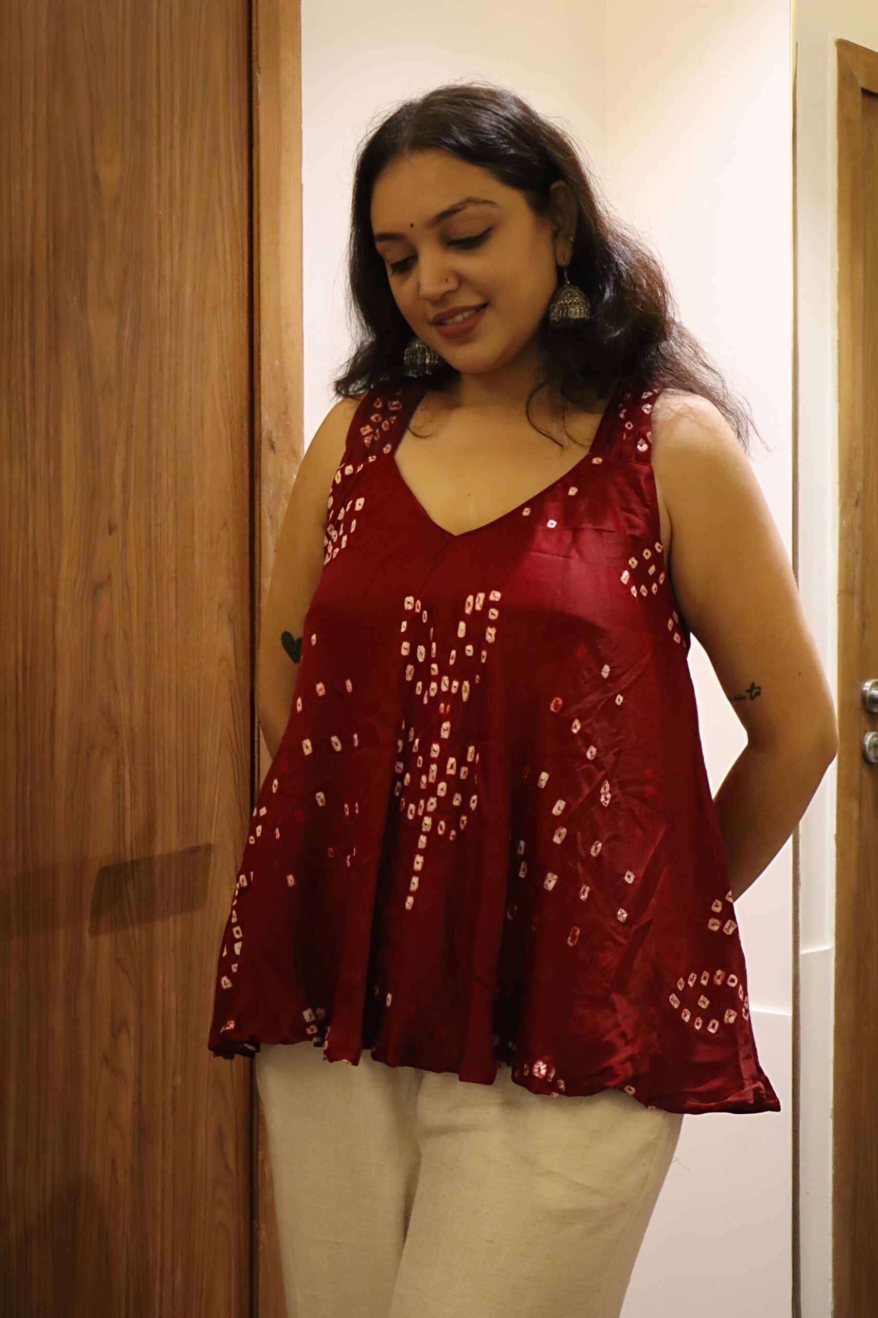 Elevate your wardrobe with our Bandhej tunic tops, crafted from rich Gaji silk. Featuring intricate traditional Bandhani patterns in a contemporary silhouette, these tunics offer the perfect blend of classic elegance and modern style — ideal for festive occasions or everyday sophistication.